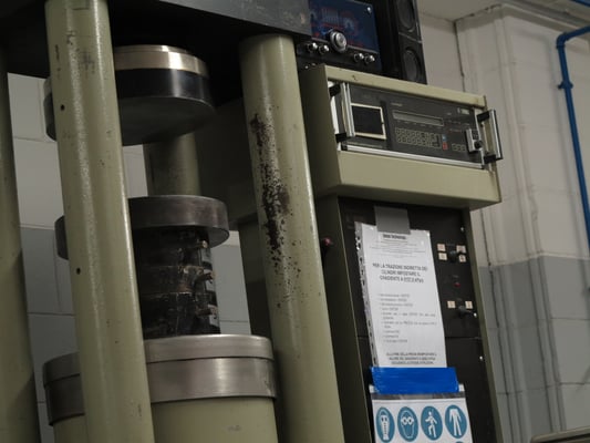 Our laboratory is equipped with a 3,000-kN press, calibrated and certified to perform compression testing specimens up to 200 mm.